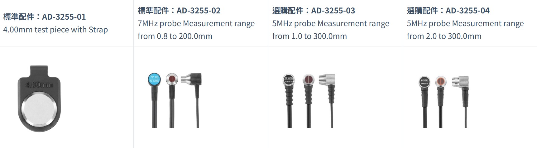 AD-3255-02(標準探頭):測量範圍 0.8~200.0mm